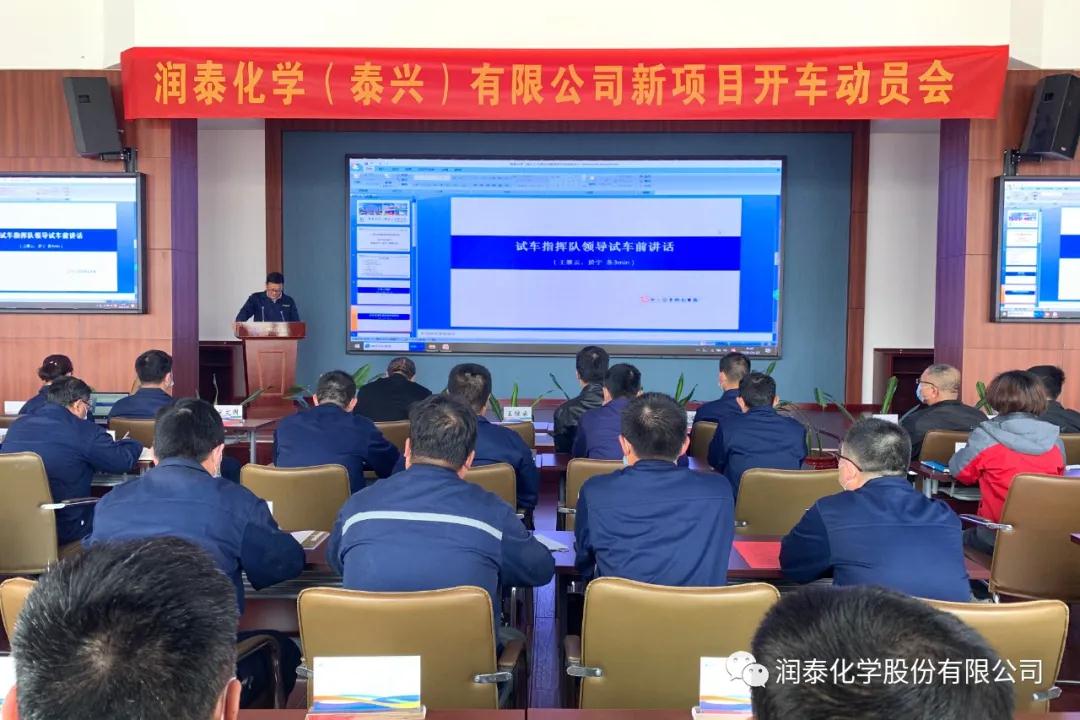 慧正资讯:良日良辰,4月27日上午8:38分,润泰化学(泰兴)有限公司新项目试生产开车动员会在五楼报告厅隆重召开。润泰股份董事长张世元、泰兴公司总经理王继云、高级顾问於宁、新项目负责人、研发中心技术人员、新装置各班组长及操作员共同参加了会议,会议由泰兴公司管委会成员张燕主持。