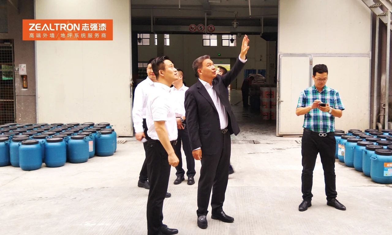 亚士漆董事长李金钟一行分别参观了志强公司的党建办公室、品牌展厅和生产车间,行政副总谢哲龙向亚士董事长李金钟一行介绍志强公司的发展历程、党建工作、所获荣誉、现代化生产设备投入及产品体系等。对于志强漆在产品与文化的建设和发展上,亚士漆董事长李金钟先生给予了高度评价。