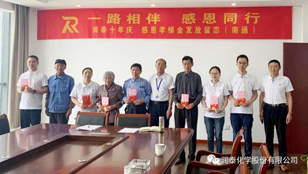 慧正资讯:心的温暖,爱的关怀。5月17日9:28分,在公司成立十周年之际,“润泰十年 感恩回馈”感恩金发放仪式分别在润泰股份、润泰泰兴、润泰南通三家公司同步隆重举行。感谢员工多年来对公司的忠诚和贡献,感谢家属的支持和理解,同时倡导员工践行敬老孝亲的传统美德,传承尊老爱老、崇德感恩的优良传统。