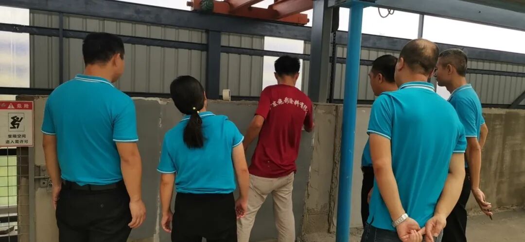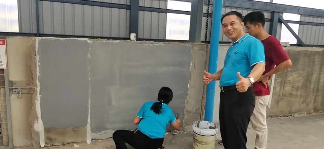 通过此次会议,华南区销售经理不仅深入学习了旧改翻新工程服务体系,进行了产品知识测试,更是亲自上手学习了批涂真石漆的施工工艺,以满满的诚意学习,用专业的水平为客户服务。