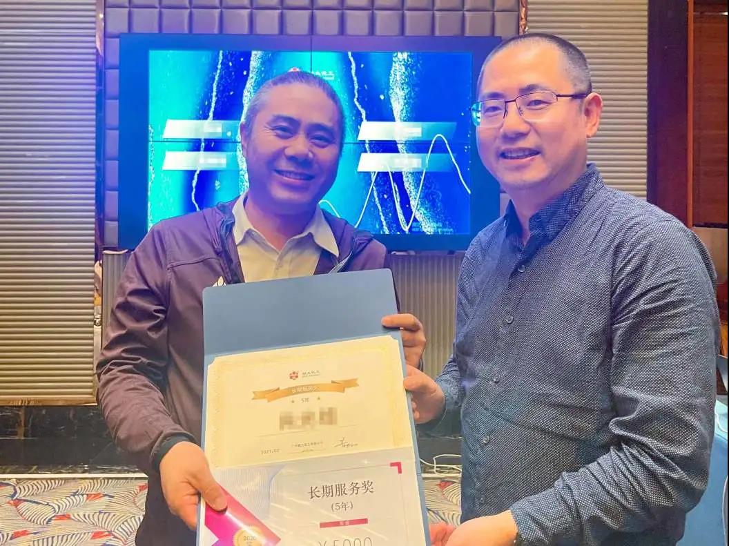 黄总在年会中总结并分享兄弟公司前辈的成功经历,分析当前材料市场行情与国家发展方向,阐述了公司产品架构,期望新员工能够加深对公司的了解,迅速成长,希望老员工在不断总结中找方法、求突破。
