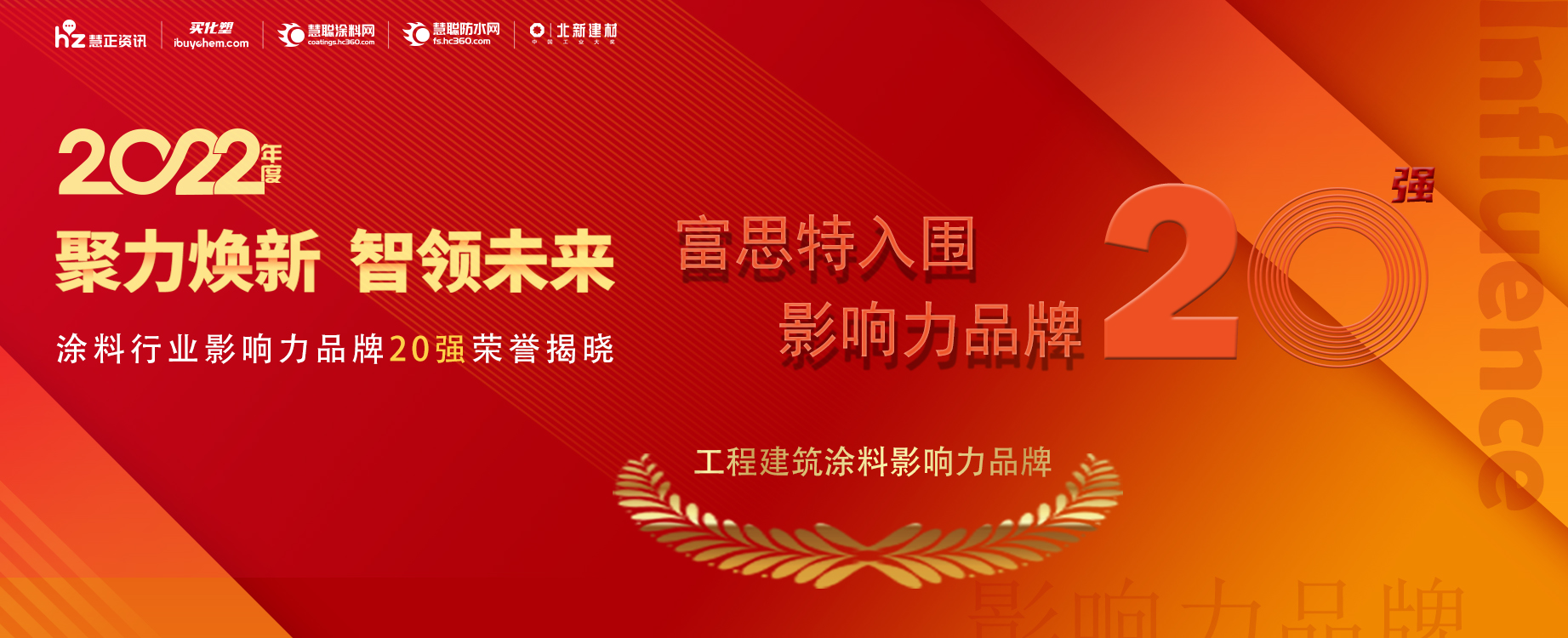 富思特作为涂料行业的标杆企业,凭借着企业在发展中构筑的强大实力以及品牌在市场中积累的良好口碑,强势入围2022年度工程建筑涂料影响力品牌20强,彰显出富思特在行业内举足轻重的品牌影响力!