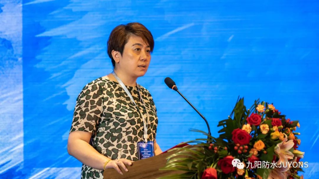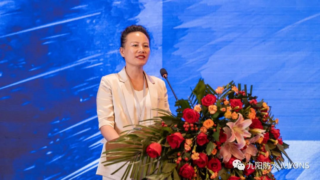 湖南邵阳市联发建筑材料有限公司总经理王慕蓉作为客户代表进行发言。她表示,邵阳联发的防水市场开拓及发展得益于九阳公司的支撑,这些年,在九阳公司的营销支持和公司团队人员的共同努力下,邵阳联发取得了一定成绩,非常感谢九阳为联发提供高品质的产品和专业的技术服务,未来期待与九阳继续保持长期的、良好的、更加紧密的合作关系,不断促进彼此之间业务合作,共同获得长足持久的发展。
