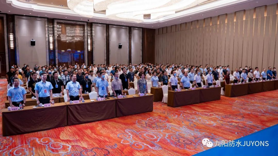 会议伊始,全体人员奏唱国歌。随后,襄州区人大常委会副主任李云峰、九阳防水营销总经理刘启南、湖北省市场监督管理局有关领导、湖北省住房和城乡建设厅质量安全处副处长唐先国、湖北省房地产业协会秘书长盛婷、湖北省建筑防水协会执行会长桂春芳等领导分别发表致辞,祝贺会议成功召开,并对九阳防水近几年的发展表示肯定,指出九阳防水作为省内防水优秀企业代表,在研发技术创新、生产管理能力、防水产品品质等方面都勇于树立行业标杆形象,把“创新自强”放在突出位置,公司布局的5大生产基地在选址、物流、运输、供应链管理等方面优势明现,节能减排效果显著,全面践行可持续发展承诺。