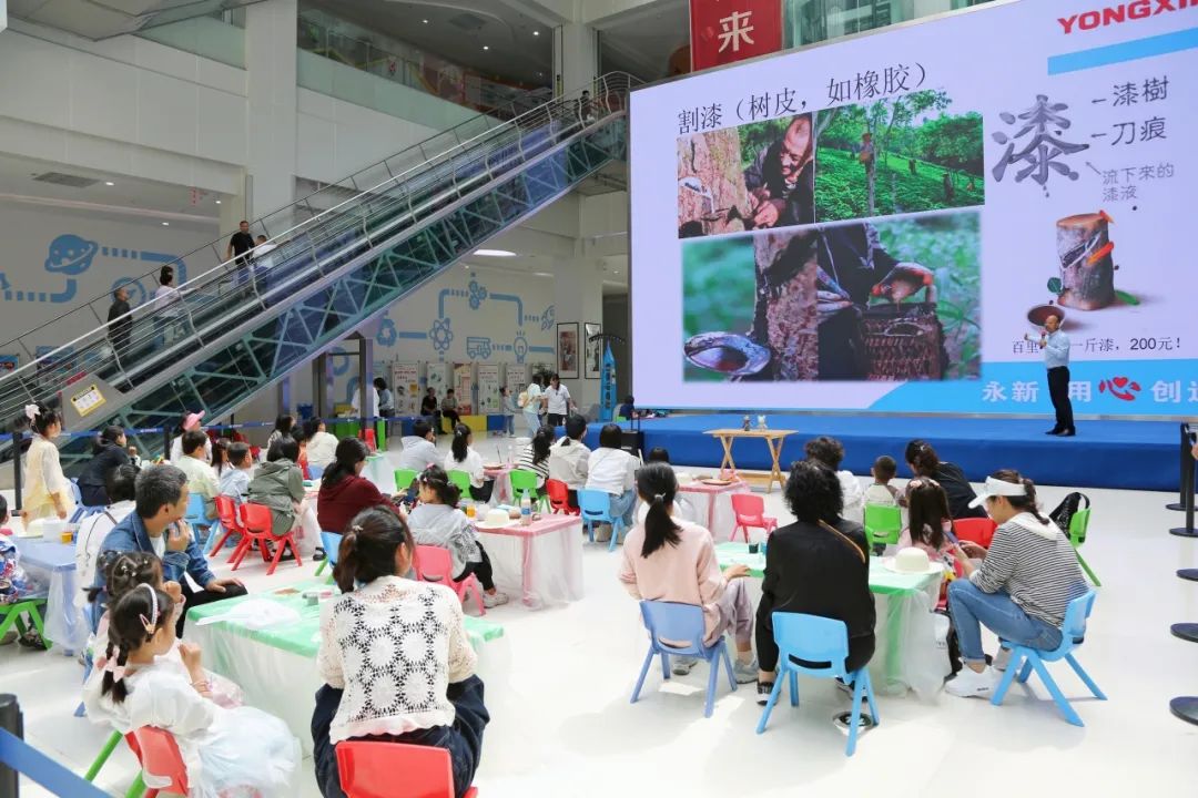 随后,工作人员现场邀请观众参加“漆彩流光耀金城”创意涂鸦活动。在家长的陪伴下,小朋友们使用永新环保水性漆即兴创作,通过淋涂、浸涂、刷涂等方式,为草帽、流体熊、面具等材料“添新衣”,切实感受涂料带来的艺术美感。