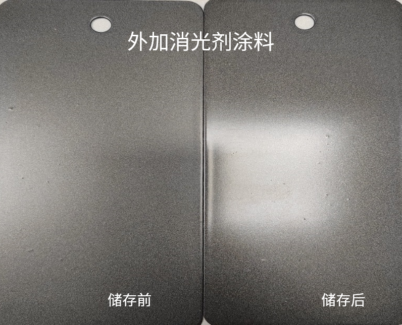 外加消光剂涂料储存后板面颗粒增多,光泽有所升高。