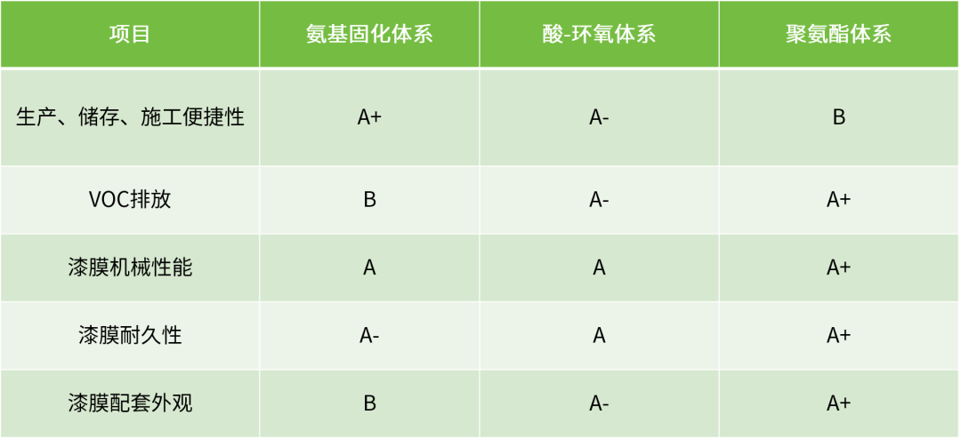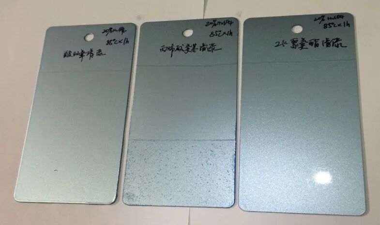 酸-环氧清漆可以看作单组份氨基烤漆的一个升级产品,其整体漆膜性能有所提升。该体系的反应活化期虽比2K聚氨酯清漆更长,但仍不如氨基烤漆常温下的稳定性。所以一般分作双组份生产储存,现场混合使用。可以将其视为罩光清漆的一个过渡体系,目前市场上仍有应用。