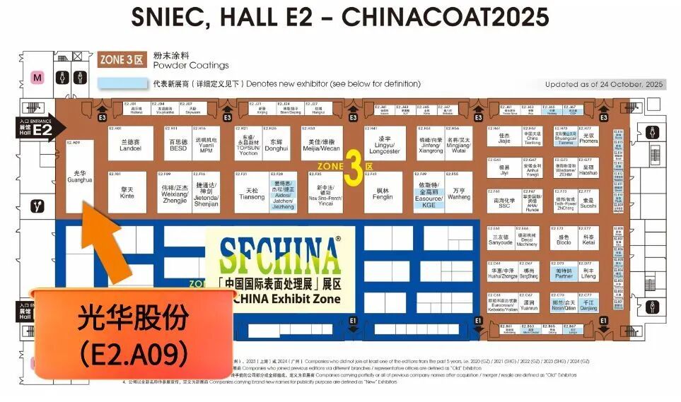 随着秋去冬来,涂料行业的盛会如约而至。2025年11月25日至27日,中国国际涂料展(CHINACOAT 2025)在上海新国际博览中心隆重举行。光华股份作为全球粉末涂料用聚酯树脂的主要供应商之一,将携其最新研发的高性能粉末涂料聚酯树脂亮相此次展会,展位号为E2.A09。