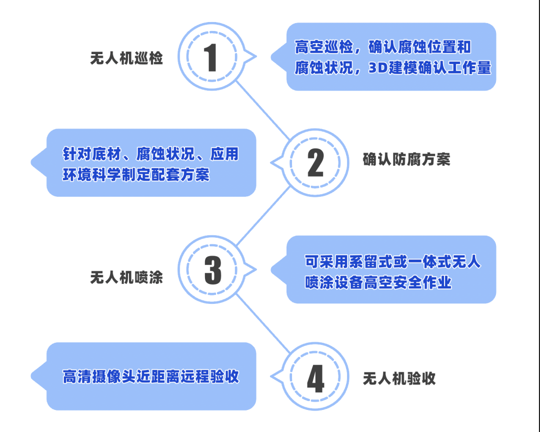 针对传统桥梁防腐维护高空风险高、人工效率低、涂层质量难控等痛点,锌盾在展会上同步推介桥梁无人化防腐维护方案。方案融合智能巡检与自动化喷涂技术——无人机搭载高清模块快速排查腐蚀并建模,无人喷涂机器人精准完成冷喷锌/烯锌自动化施工,既降人工安全风险,又提涂层均匀度与施工效率,尤其适配大跨度桥梁、复杂结构防腐维护,为桥隧养护注入“智慧力量”。