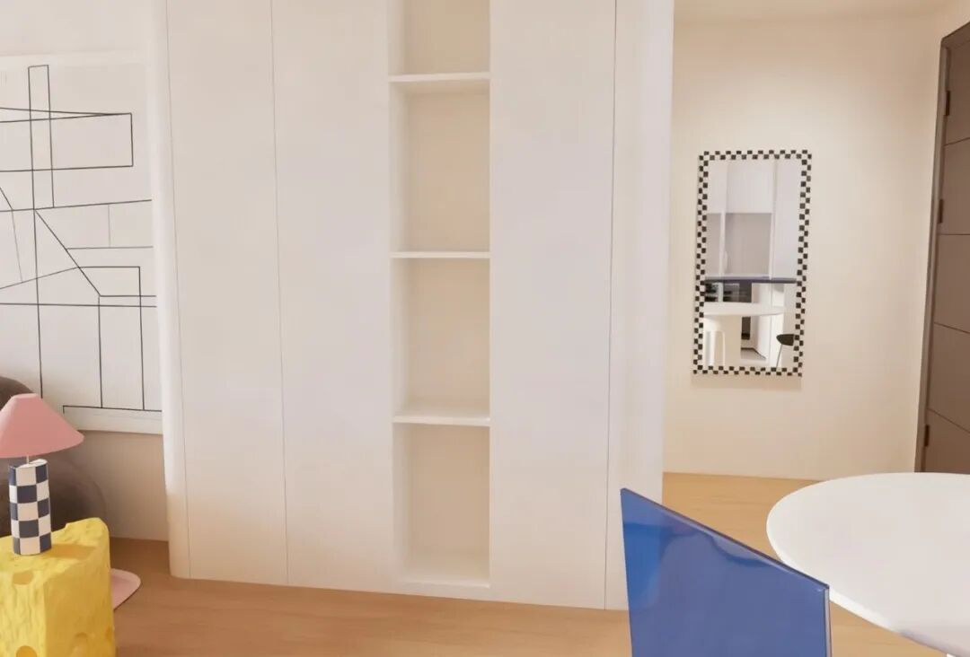 墙面刷完无需等待特殊工序,可直接转涂柜门;金属框也不用单独处理,能与墙体同步涂装。这种 “无间断、无差异” 的施工方式,让墙体与柜门从 “独立单品” 变成 “有机整体”,没有拼接缝隙,没有光泽断层,天然契合极简风 “去繁就简” 的核心主张,也为高级感奠定了 “整体统一” 的基础。