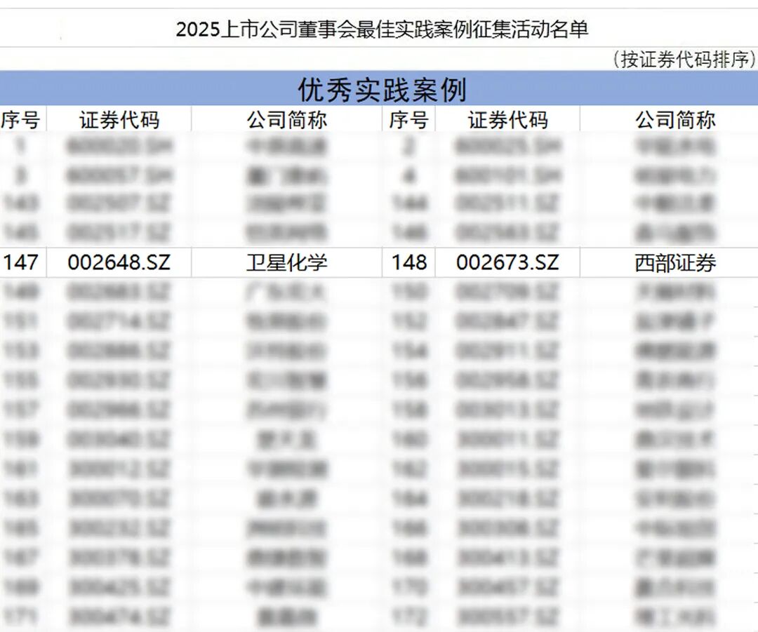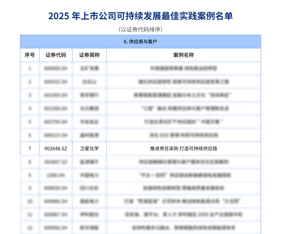 慧正资讯,2025年11月18日,中国上市公司协会(以下简称“中上协”)发布了2025年上市公司可持续发展实践案例及上市公司董事会实践案例评选结果。卫星化学(002648)在两项评选中双双入选,公司可持续发展实践案例跃升为 “可持续发展最佳实践案例”;公司董事会治理实践首次获评“上市公司董事会优秀实践案例”,公司治理能力与可持续发展水平再获权威认可。