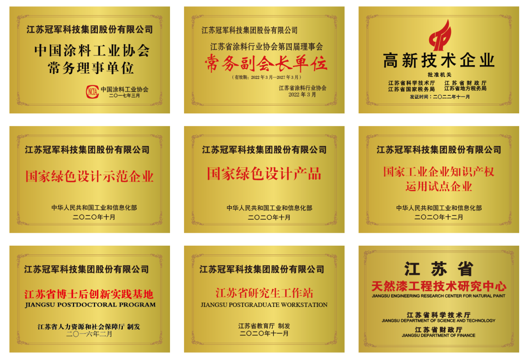 技术创新的底气,源于持续加码的研发投入和完善的创新体系。冠军集团现已建成江苏省博士后创新实践基地、江苏省研究生工作站、江苏省企业技术中心、江苏省天然漆工程技术研究中心等多个高端创新平台,为技术研发提供了坚实的硬件支撑。依托专业的研发团队,公司在绿色环保涂料领域不断突破,主导或参与起草16项国家及行业标准,以专业实力引领行业规范化发展。