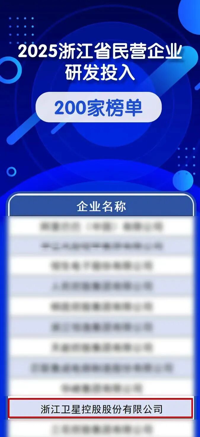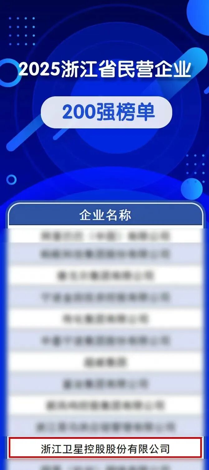 慧正资讯,2025年12月5日,浙江省“两个健康”集成改革暨促进年轻一代民营经济人士高素质成长全国试点工作会议在浙江召开。会上正式发布“2025浙江省民营企业200强”“2025浙江省制造业民营企业200强”等五张系列榜单。卫星化学入榜“2025浙江省民营企业200强”“2025浙江省制造业民营企业200强”“2025浙江省民营企业研发投入200家”“2025浙江省民营企业发明专利200家”,充分展现出在规模体量、制造实力、研发投入和自主创新等方面的综合优势。