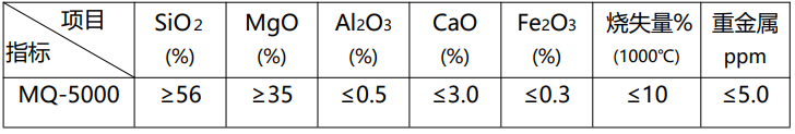 MQ 系列镁强粉选用高纯含镁天然矿石,经过筛选、精洗、烘干,添加 合成辅料研磨、分级等一系列严密工序精制而成。该产品具有粒径小、消光性好、 比重小、悬浮性好、性价比高等特点,其粒度分布均匀、吸油量适中。外加其它 合成辅料改性后,制成的新一代可应用于塑料、电缆、油墨及涂料油漆面漆的 MQ 系列镁强粉。在涂料面漆中可替代部分消光剂以增加手感、消光效率,硬度、降 低配方成本。在其他行业中可以改善产品的综合性能,提高生产效率,降低生产 成本,经国内多家大中型化工涂料生产企业使用后获得了良好的评价和经济效益。