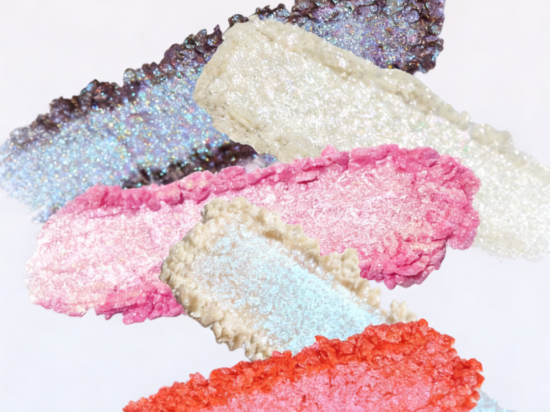 在炫彩变色龙系列中,坤彩科技将推出全新细粒径变色龙珠光产品。该系列告别传统变色珠光的颗粒砂感,实现全彩妆品类适配,符合全球化妆品安全法规。其中,细粒径干涉色变色龙珠光具有通透灵动、丝滑变色的特点,可搭配各类彩妆基底;细粒径实色变色龙珠光则具备卓越色彩饱和度与遮盖力,呈现细腻流动的高级液态金属质感。