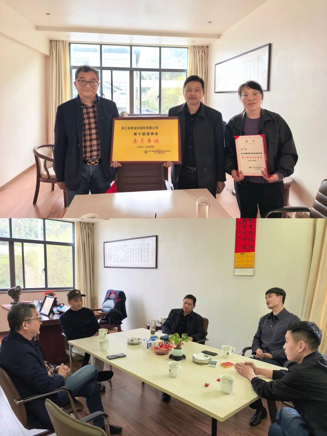 浙江省粘接技术协会涂料分会走访无奇涂料 授予委员单位证书
