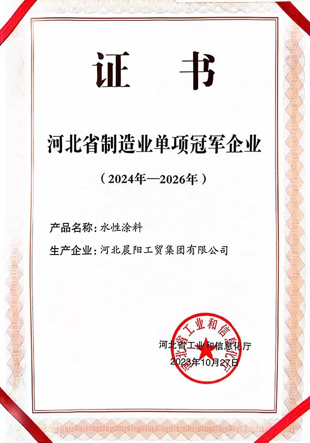 [河北晨阳工贸集团有限公司]荣膺 “[墙面漆影响力品牌]、[水性工业漆影响力品牌]” 两项大奖,成为行业践行 “数绿融合”新质生产力的标杆典范。